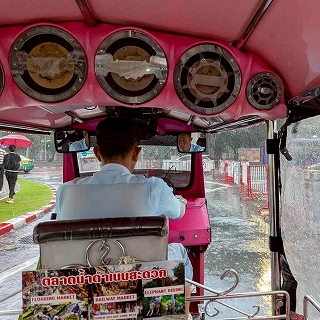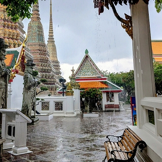 とりあえず雨宿りしていましたが、いつまで降り続けるのか分からず時間が過ぎていくばかり、二人でどうしようかと話し合った結果、ワット・ポーを離れて都心部に行くことに、そして