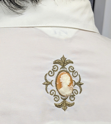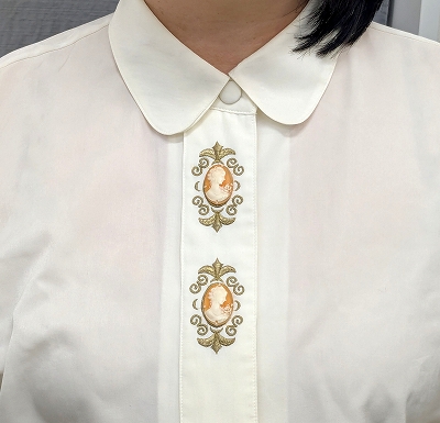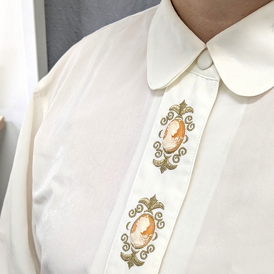 ジャン!刺繍の中にカメオが組み込まれたブラウスです♪