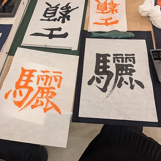【馬】という字の起源や派生を聞いた後、実際に字を書いていくのですが、中国漢字では馬の毛色や等級によってもそれぞれの字があると聞いて驚きました。