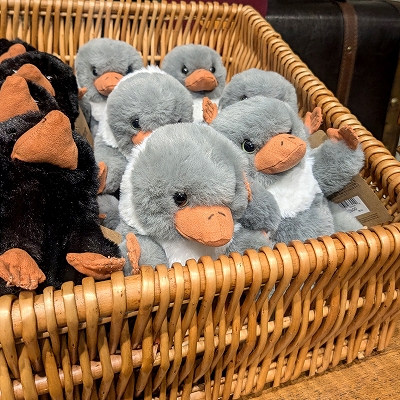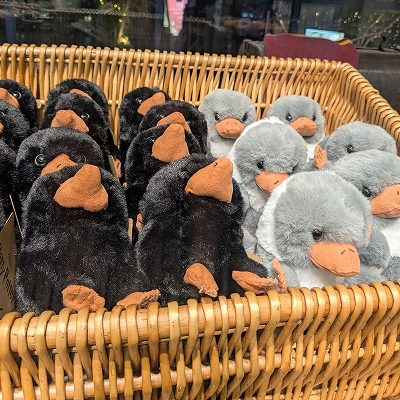こちらハリーポッターシリーズやファンタスティックビーストシリーズ内に登場する二フラーという幻想生物のぬいぐるみ