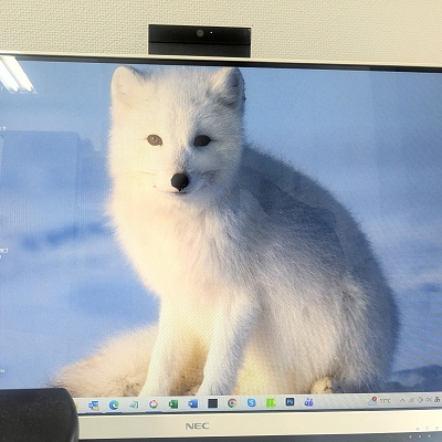 ディスプレイ画面に現れた純白の狐さん(狐ですよね?)