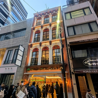 華やかなオレンジ色が目を惹くこちらの建物、お店の前には結構な人の列が出来てました。